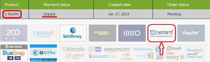 You will find an unpaid invoice for one month (by default). You can change the VPN plan by selecting one of the subscription periods on the left of the screen.